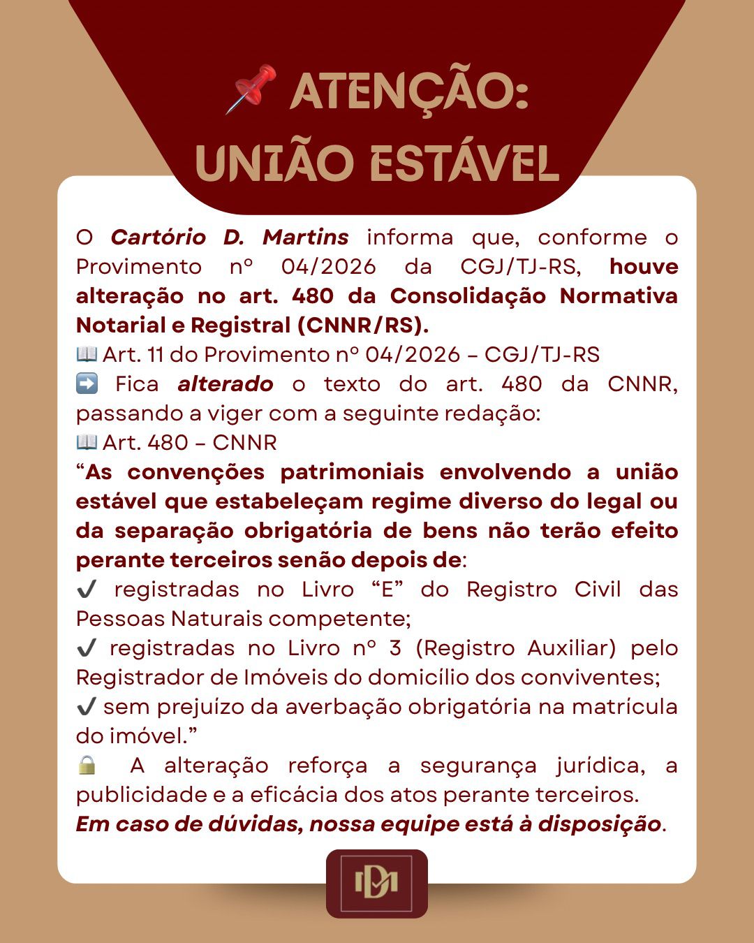 📢 Atualização importante sobre União Estável Você sabia que houve mudança nas regras sobre convenções patrimoniais em união estável?...