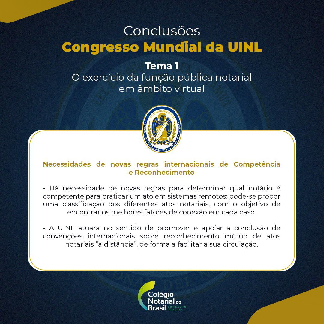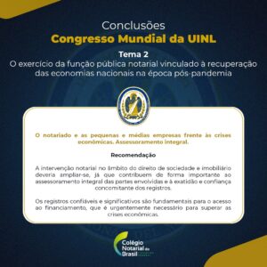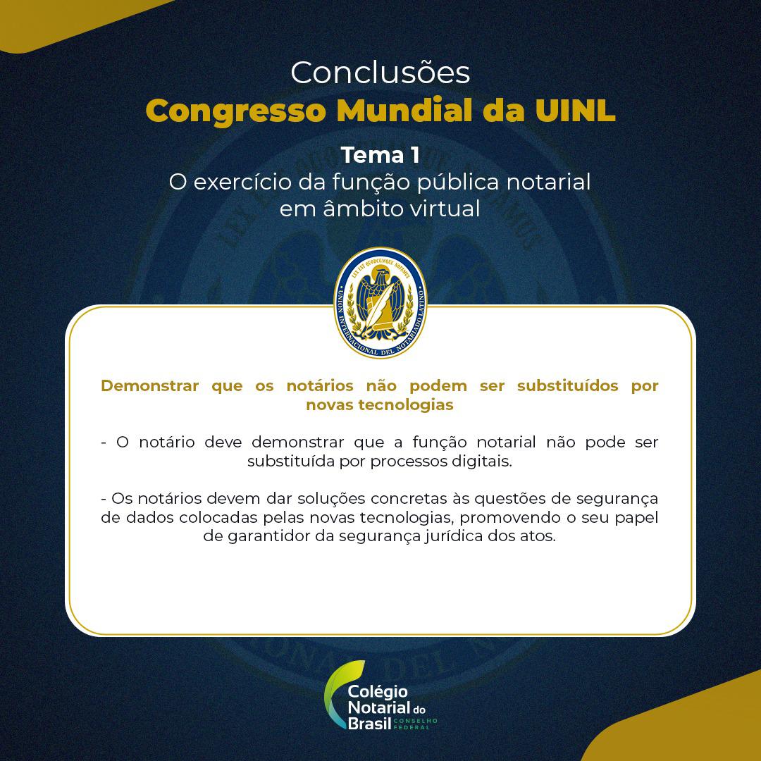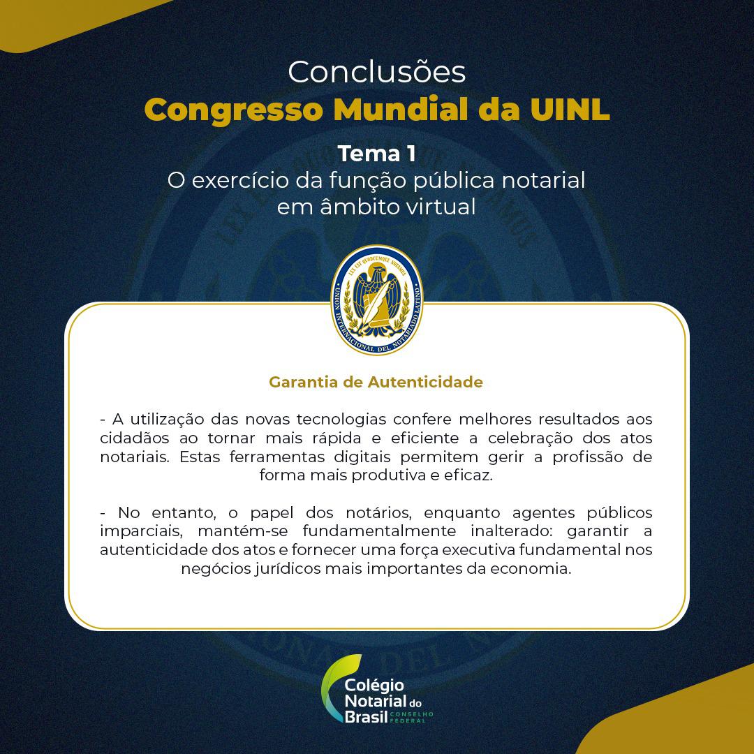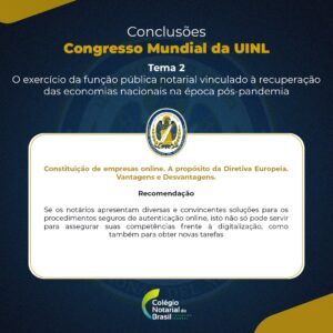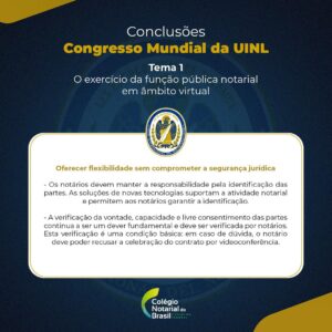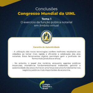 Leia as conclusões do tema de estudo do 30º Congresso do Notariado Mundial, “Exercício da Função Notarial em Âmbito Virtual”, apresentados durante o evento que ocorre em Cancun, no México. Os temas selecionados dialogam com os principais desafios do Notariado Mundial ao longo dos últimos 3 anos.