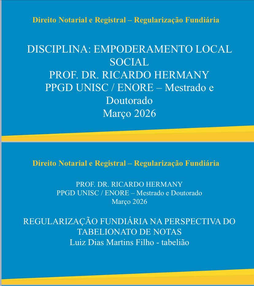 Aula inaugural da disciplina do Professor Dr. Ricardo Hermany no mestrado do PPGD UNISC em convênio com a ENORE-Escola de Notários e Registradores